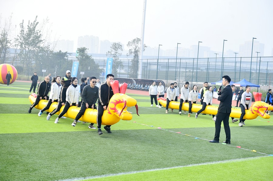 在趣味比賽中,水利萬物·筑夢向前(托舉球)項目各個參賽隊齊心協力,一起托舉起巨大球體穩步前行,克服各種不確定性阻力最終到達終點,迎來陣陣掌聲;在銳意進取·水發齊心(單繩拔河)項目比賽現場,抓牢賽繩,勒繩下腰,降低重心,齊心協力往后“拔”,歡呼聲、加油聲此起彼伏;奮楫爭先·“水”與爭鋒(賽龍舟)、長風破浪·共贏未來(滾滾向前)趣味比賽項目,盡顯“活力水發·運動水發”的健康形象。