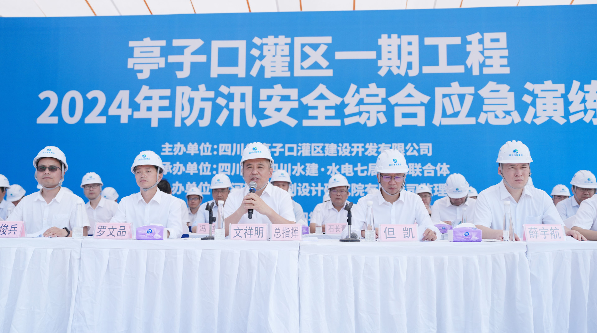 為深入貫徹習近平總書記關于防災減災救災的重要論述,堅持“人民至上,生命至上”思想,認真落實廳黨組和集團黨委2024年安全生產工作要求,提升應急處置能力。4月28日,亭子口公司聯合參建單位在構溪河渡槽施工現場組織開展亭子口灌區一期工程2024年防汛安全綜合應急演練。亭子口公司黨委副書記、副董事長、總經理文祥明擔任總指揮并講話。